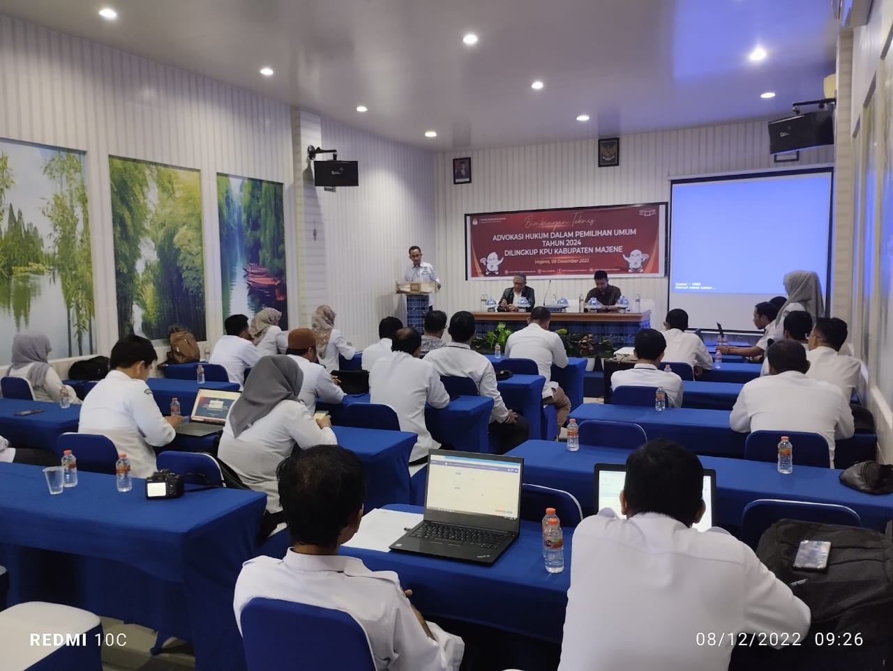Kegiatan tersebut dibuka oleh Ketua KPU Kabupaten Majene, Arsalin dengan menghadirkan pemateri dari Kejakasaan Negeri Majene, yakni Kasi intel, Amanat Panggalo dan dari Div. Hukum dan Pengawasan KPU provinsi Sulawesi Barat, Farhanuddin yang dilaksanakan di aula Lepa-Lepa Villa Bogor Majene.