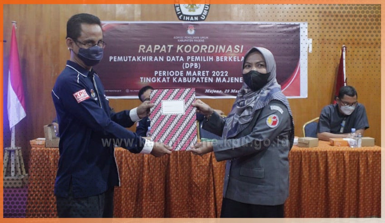 Majene, kpu.go.id – Laksanakan Rapat Koordinasi Pemutakhiran Data Pemilih Berkelanjutan Periode Maret 2022. KPU Kabupaten Majene berkomitmen untuk menyelenggarakan Pemilihan dan Pemilu 2024 yang berintegritas dengan menghadirkan data pemilih yang akurat. Oleh karena itu, sesuai dengan PKPU Nomor 6 Tahun 2021 Tentang Pemutakhiran Data Pemilih Berkelanjutan, maka KPU Kabupaten Majene menyelenggarakan Rapat Koordinasi Pemutakhiran Data Pemilih Berkelanjutan (DPB) Periode Maret Tahun 2022 Tingkat KPU Kabupaten Majene pada hari ini, Selasa 29 Maret 2022 bertempat di Aula Kantor KPU Kabupaten Majene.
